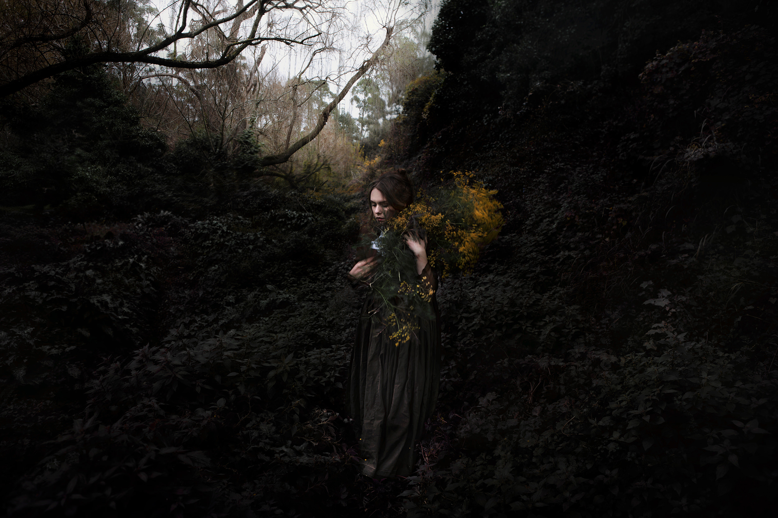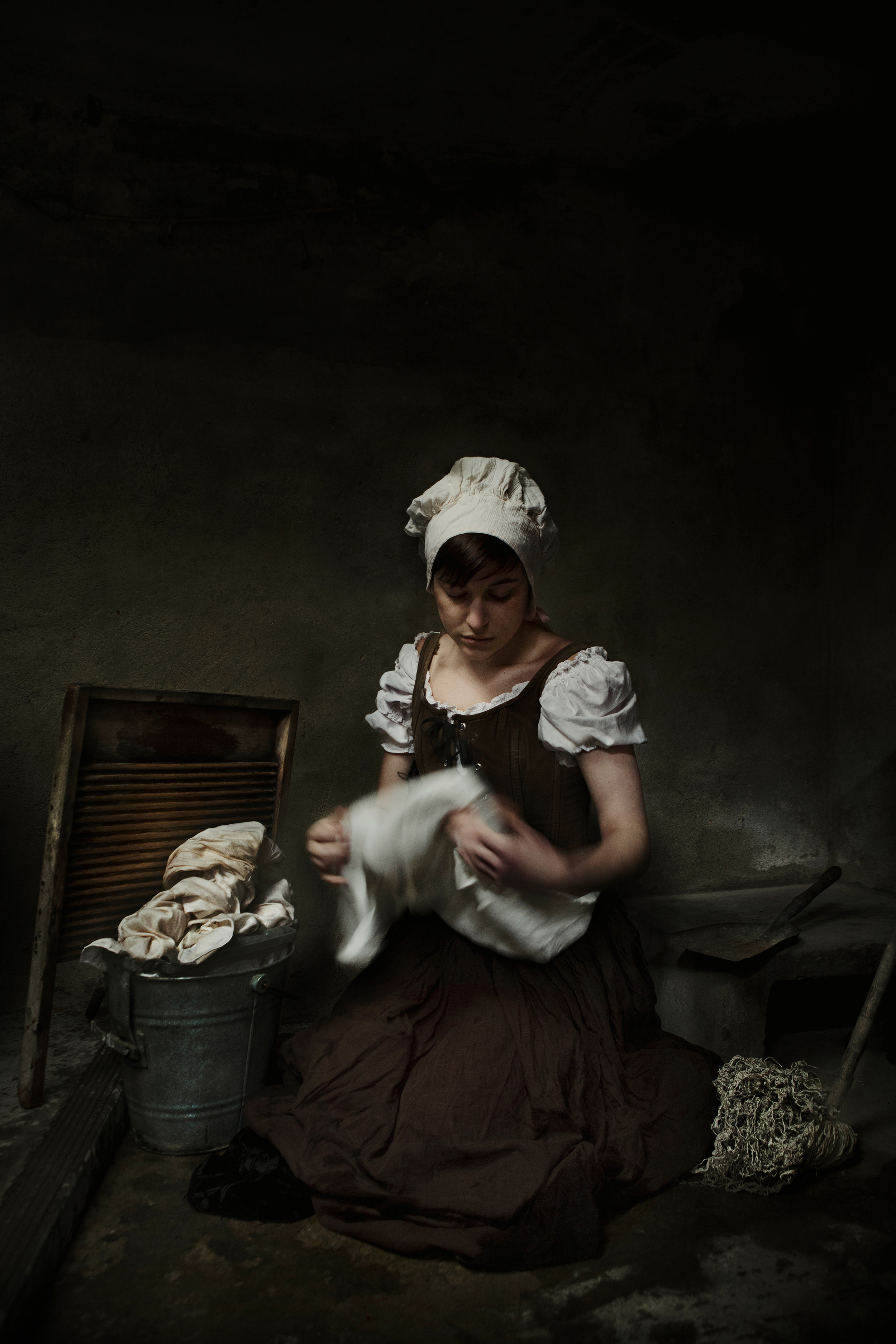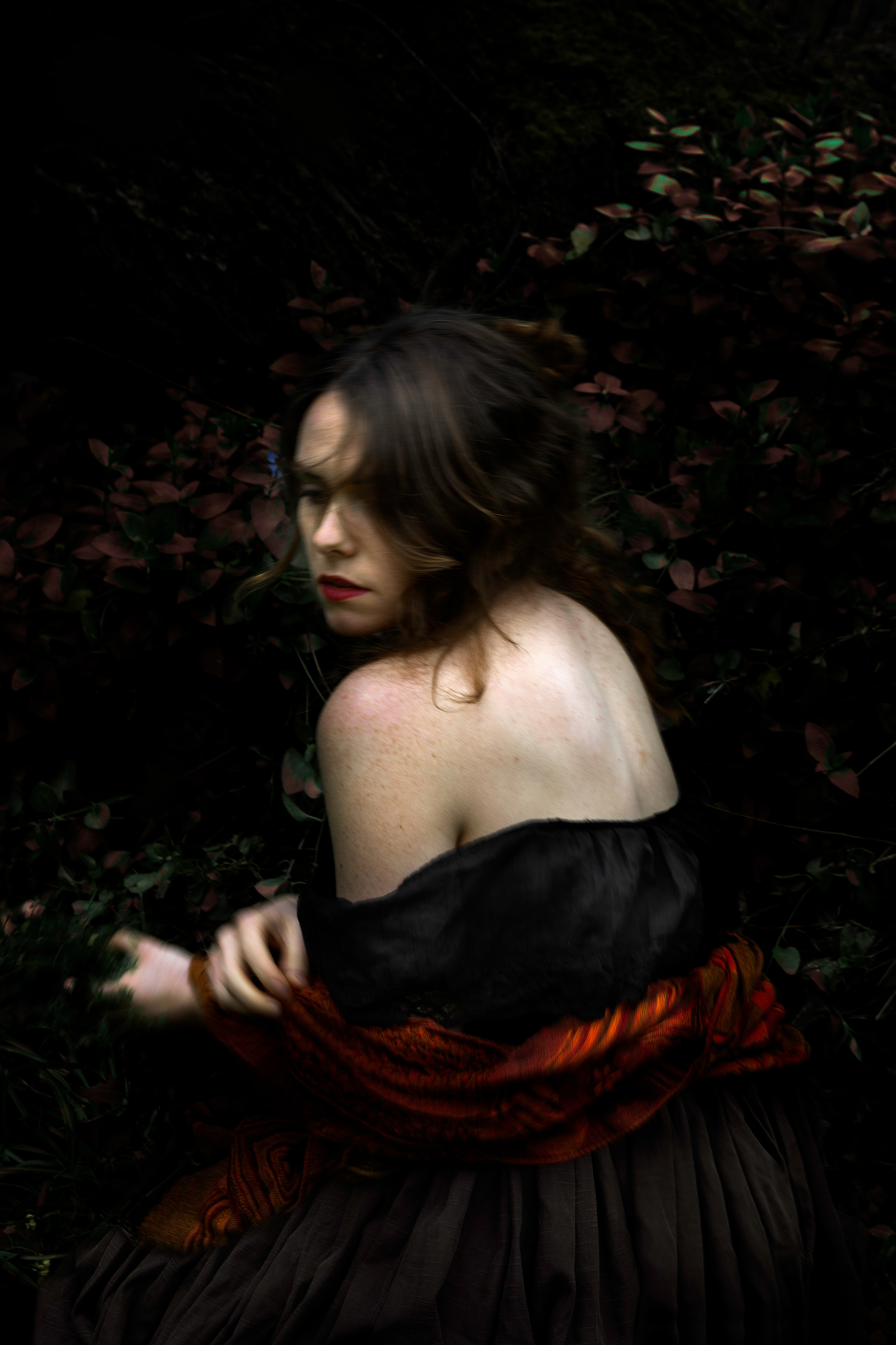 Figures appear cloaked, contorted, or obscured, often gazing elsewhere or captured mid-motion. Some are bound in ritualistic gestures, others seem to vanish into fabric or darkness. Referencing historical painting, folklore, and cinematic tableaux, these images resist easy narratives. They speak instead to a lineage of women who endured, adapted, concealed, and mourned in silence.